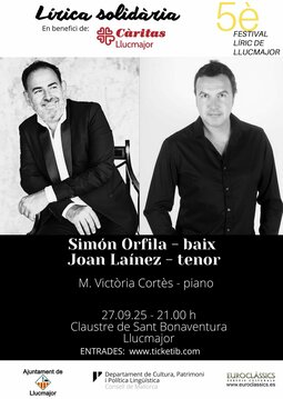 Recital Líric Solidari amb el Baix Simón Orfila, el tenor Joan Laínez i acompanyats al piano per Maria Victòria Cortés.