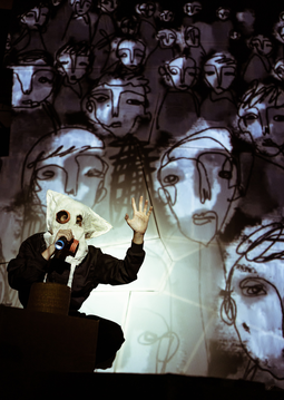 Just like the street vendors who used to walk for miles in order to display their goods at the main square, the Idiot Community has arrived to show its symbols, its history, its products, its astrologists, experts, its memes, its cracks, its music, its doubts and, above all, its ode to chaos. An act of faith with the audience, with the only purpose of devouring the brain of any creature who dares to stop before the mecca of idiocy.