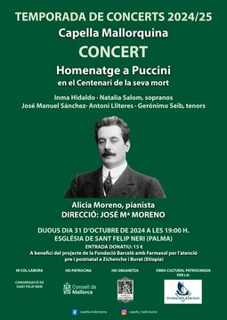 Concierto Homenaje a Puccini de Opera y Zarzuela en la Iglesia de San Felipe Neri, en el centenario de su Muerte.