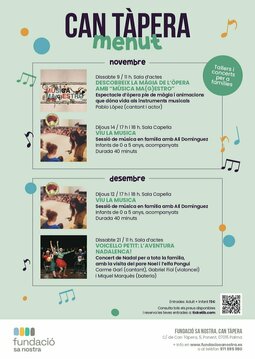 *Si heu comprat diverses entrades, no es poden reemborsar per separat. Tot i això, podeu fer servir les entrades per assistir a un altre concert del cicle Can Tàpera Menut. Si voleu canviar les entrades, és important que ens aviseu amb antelació. Per fer-ho, contacteu amb la persona responsable de la programació musical de Can Tàpera a: cantaperamelodies@fundaciosanostra.es.*